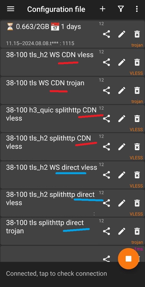 Direct و کانفیگ های CDN) تست نمائید.